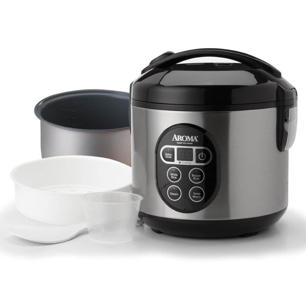 Aroma Housewares 2-8-Cups (Cooked) Digital Cool-Touch Rice Grain Cooker and Food Steamer, Stainless, 8 Cup, Silver
